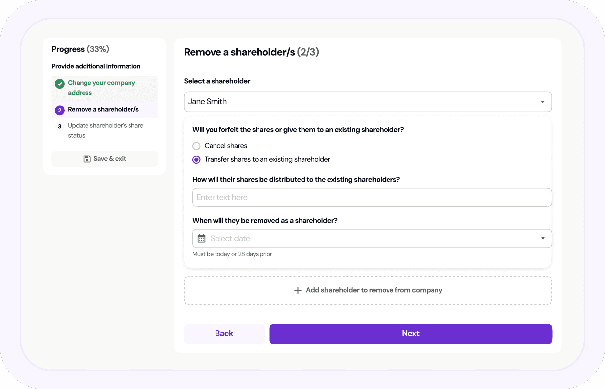 Update your shareholders, directors or company address from just $299 per change.