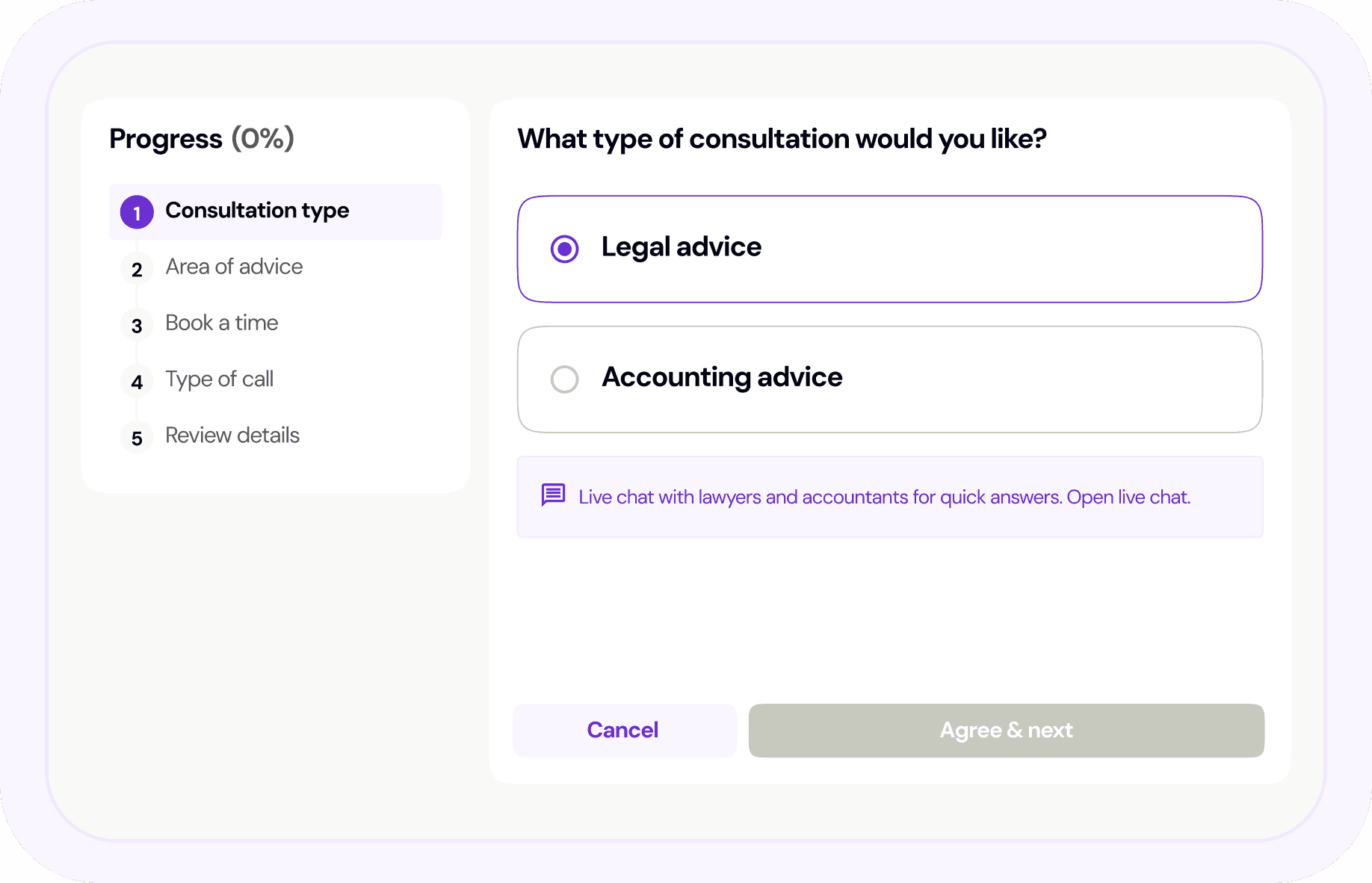 Unlimited consultations with qualified lawyers and accountants, contract reviews and drafting and access to trusted advisory firms - all through one platform.