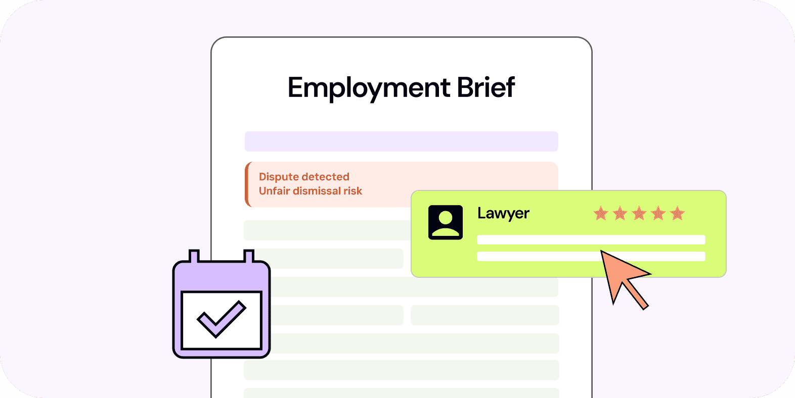 Atlas detects an unfair dismissal risk based on the termination timing, contract terms and Fair Work obligations. It compiles a full employment brief - including the contract, payslips, and prior HR conversations - and books a call with an employment lawyer.