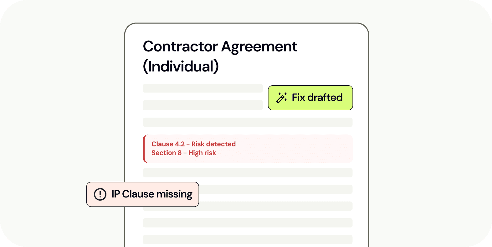 Atlas scans your contractor agreements and identifies that one is missing an intellectual property assignment clause. For a tech business, this is a serious risk. Atlas drafts the missing clause and flags it for your review.