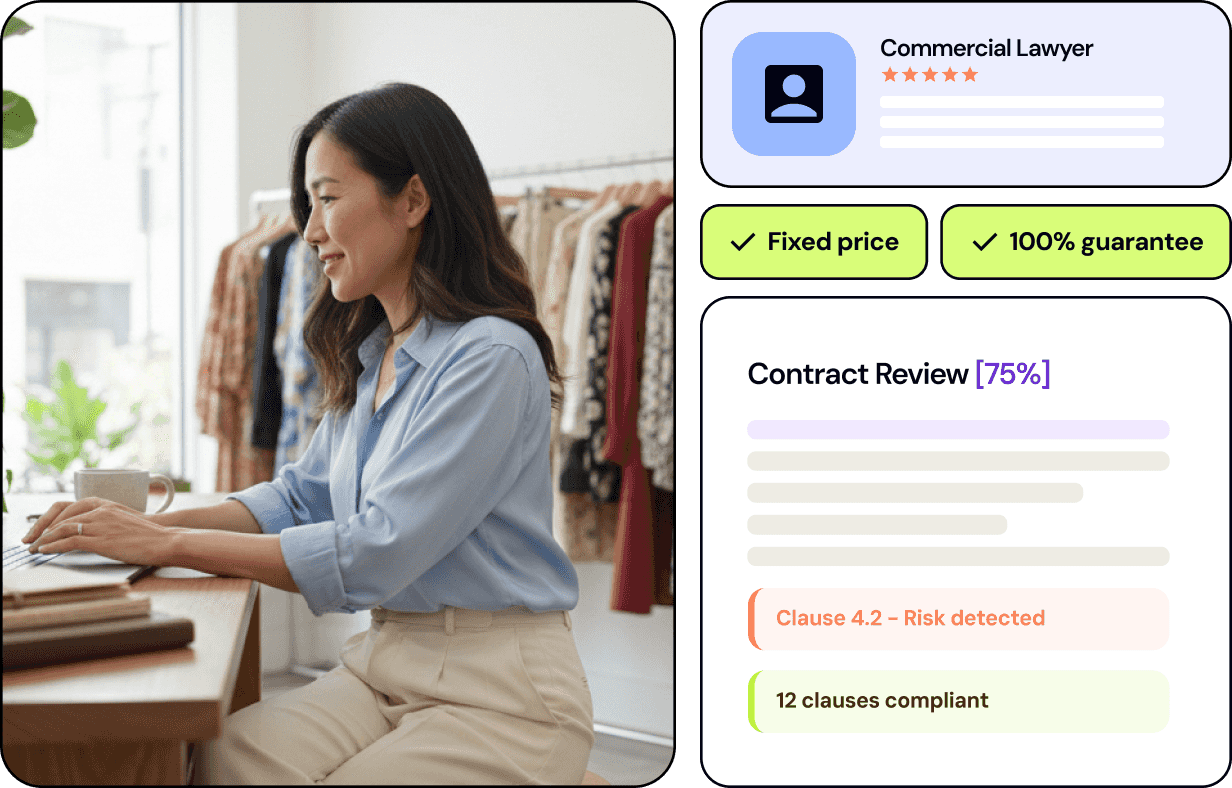 Generates first drafts of contracts, policies and legal documents using your business context, industry data and current legislation. Your lawyer then refines and finalises.