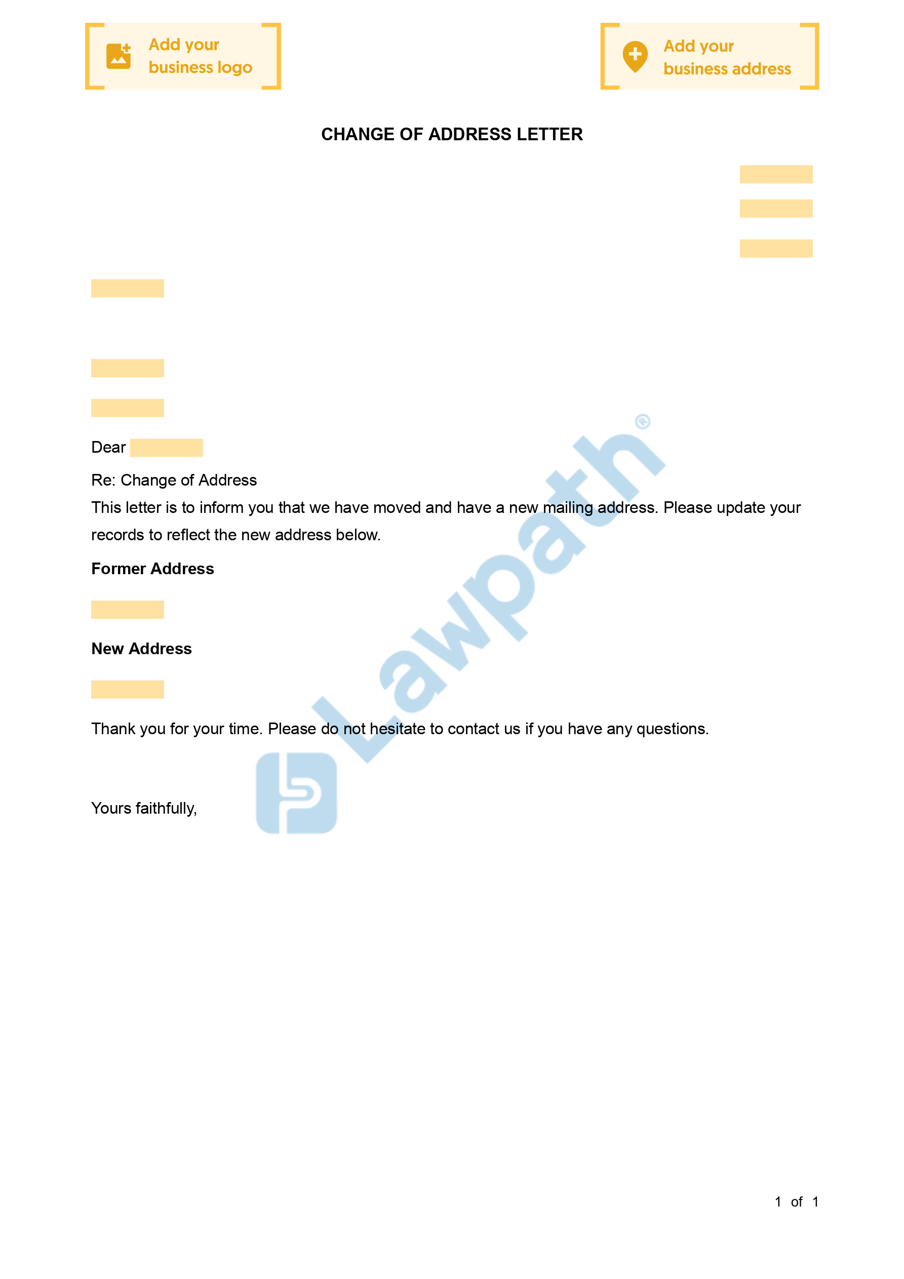 Change of Address Letter