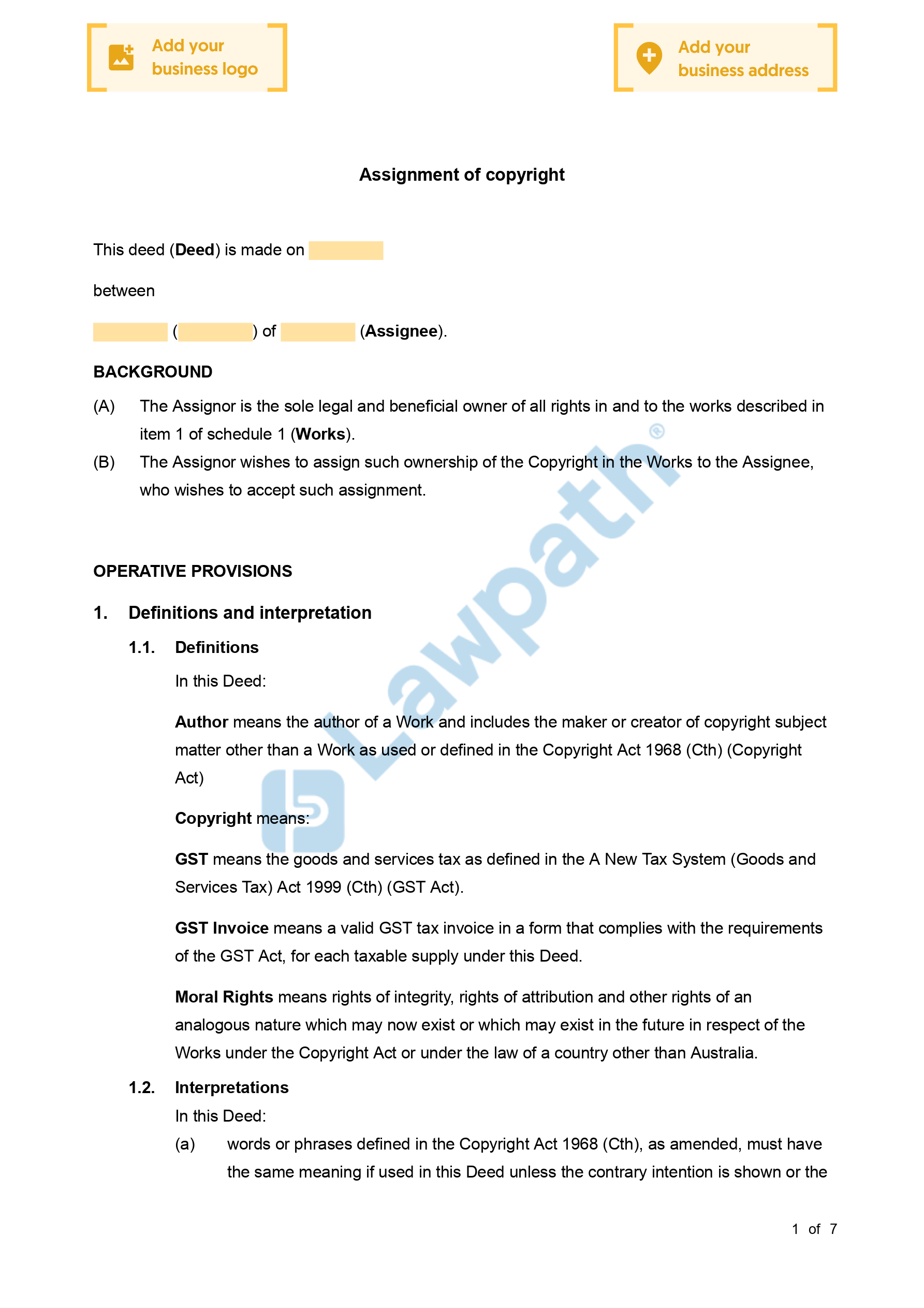 This Copyright Assignment puts into effect a legal transfer of copyright that meets the requirements of section 196 of the Copyright Act 1968 (Cth).
