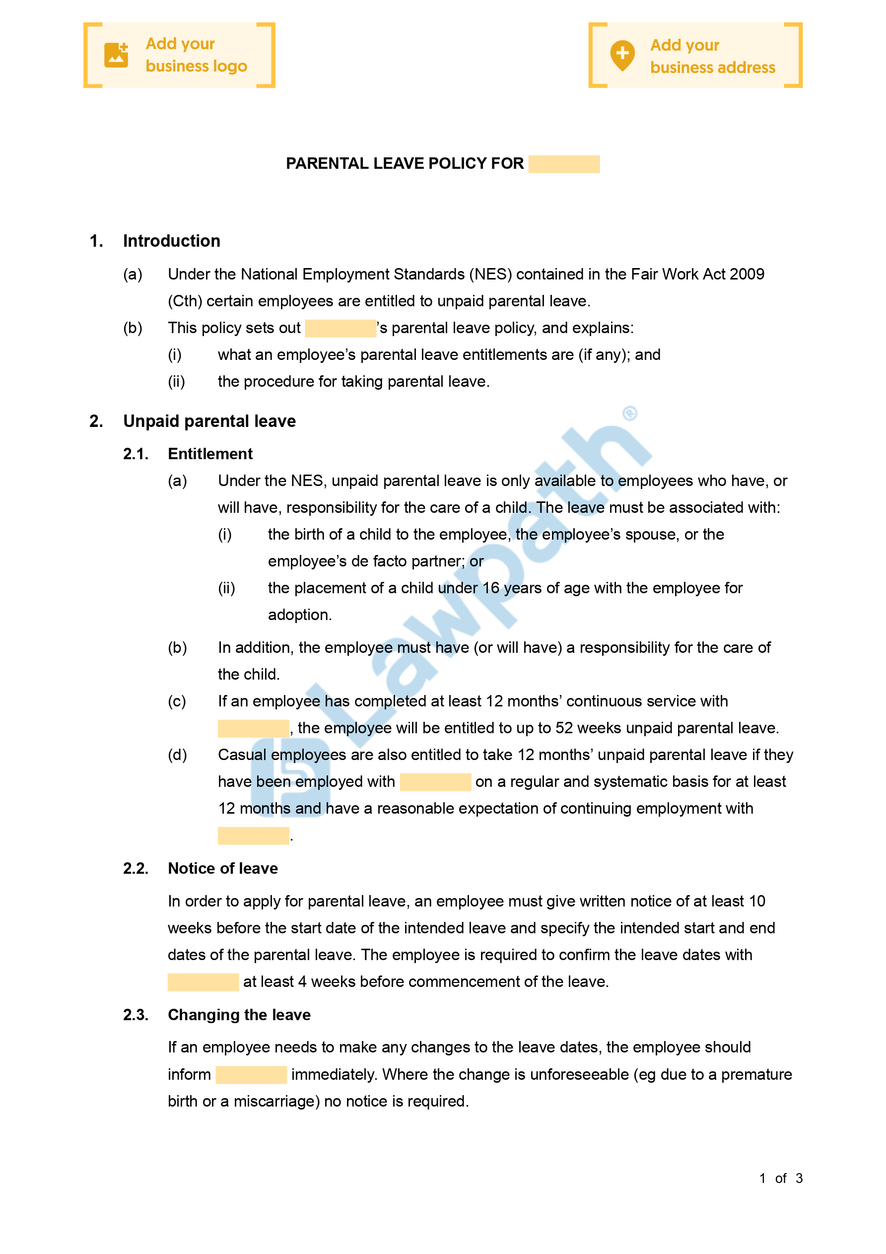 Create a quality Parental Leave Policy document Quickly using Lawpath’s quick document creation tool. Define leave and notice requirements. Draft yours now!