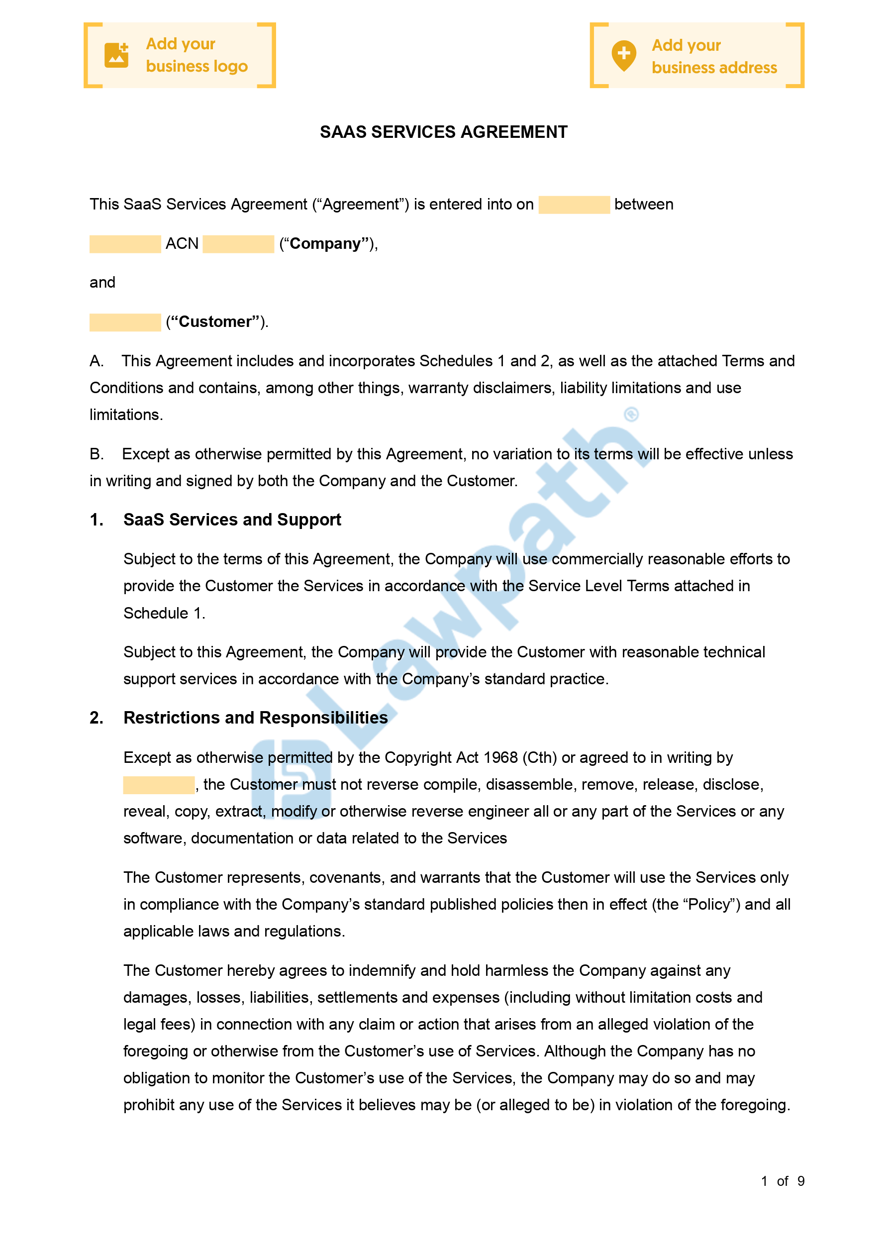 SaaS Agreement (Software as a Service)