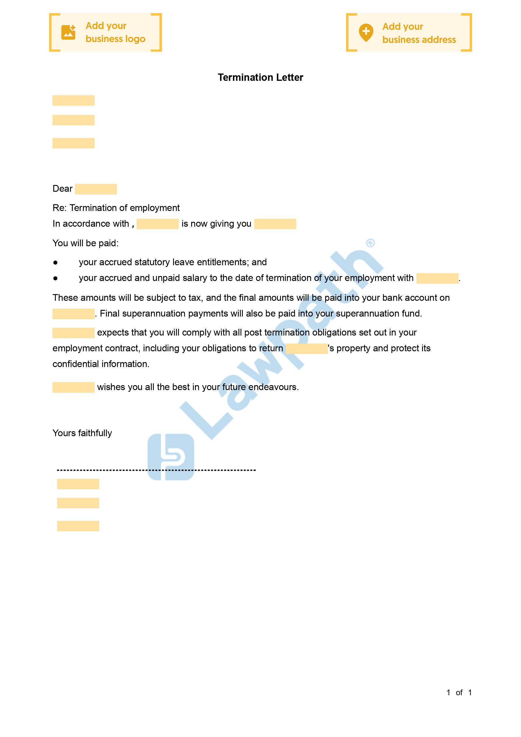 View Sample Termination Letter (Notice or Payment in Lieu)