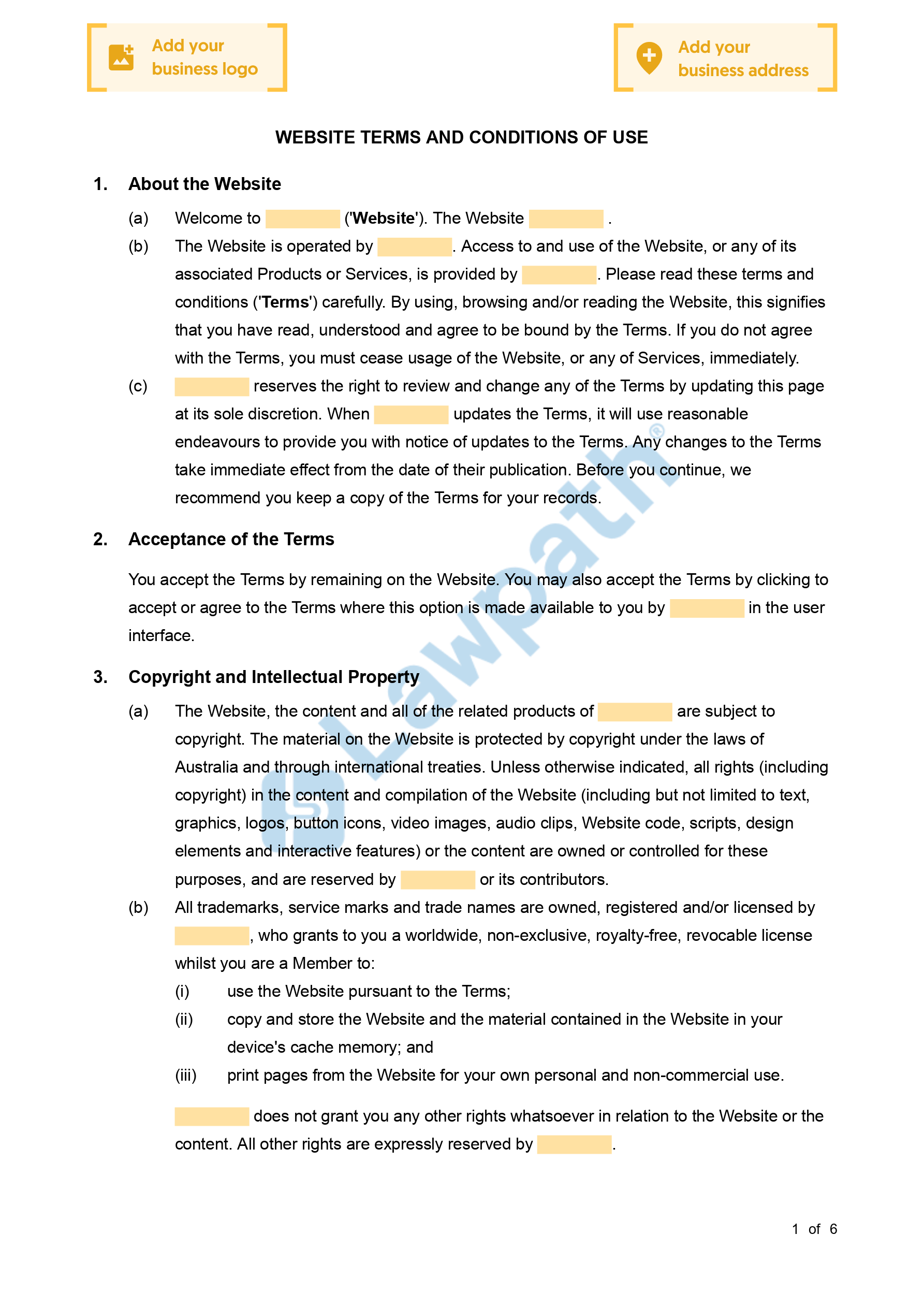 This Website Terms And Conditions of Use (Goods) outlines the rules people must follow when using your website. It includes protection for your IP, disclaimers to limit your liability and makes you compliant with Australian law.